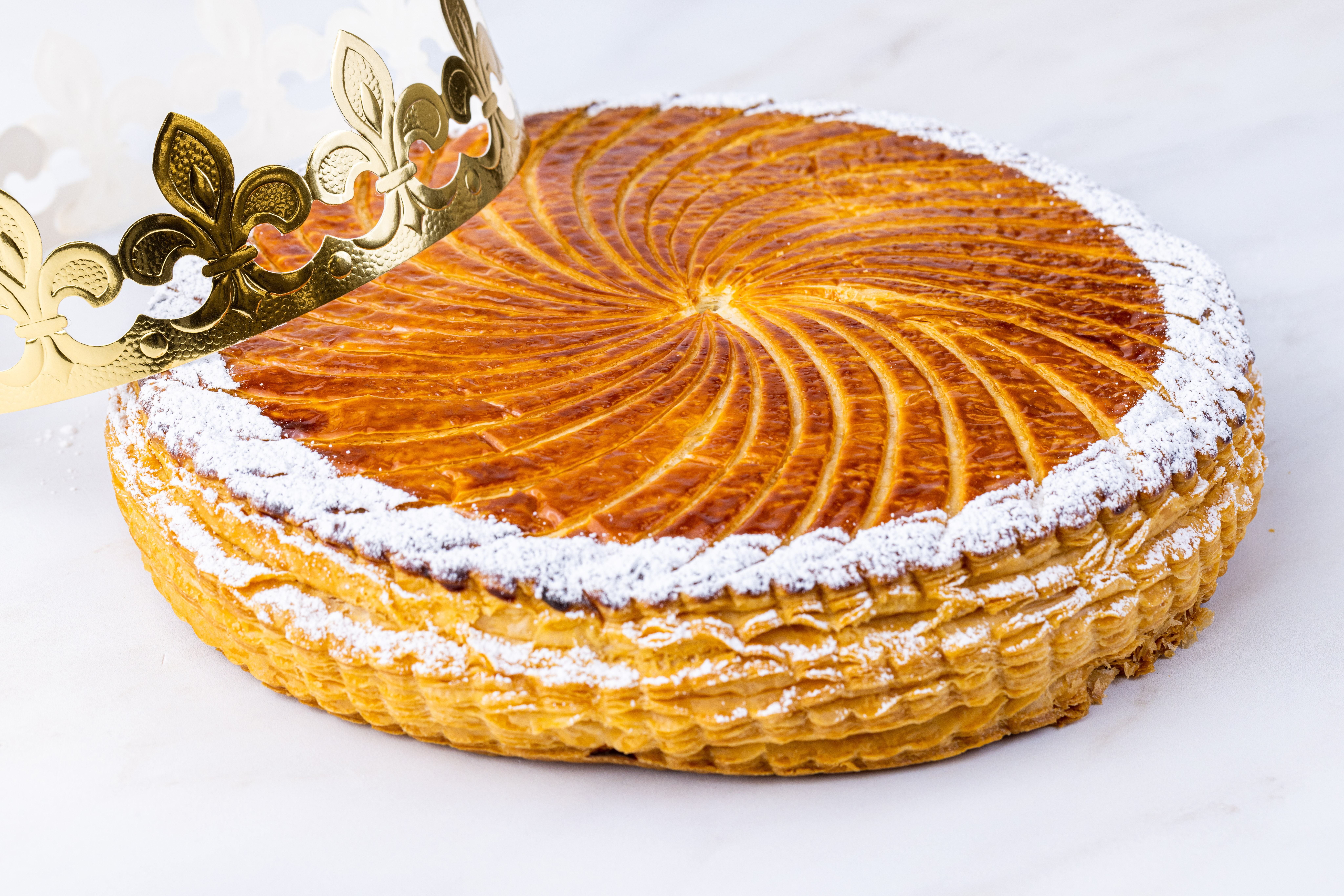 Celebrate Epiphany with our Galette des Rois (or “Kings Cake”), a traditional French pastry filled with almond frangipane and made with a flaky reversed puff pastry crust. Think: almond croissant in cake form! Each comes complete with a fêve (or a small prize) and a golden paper crown so that the winner who finds it is declared King for the day!